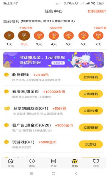 一款非常不错的可以看漫画赚钱提现的优质软件;