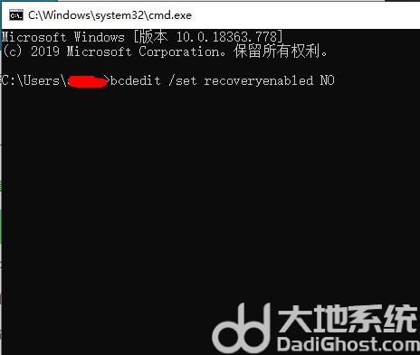 4、关闭后再也无法打开了,如需开启输入 cdedit /set recoveryenabled YES 即可
