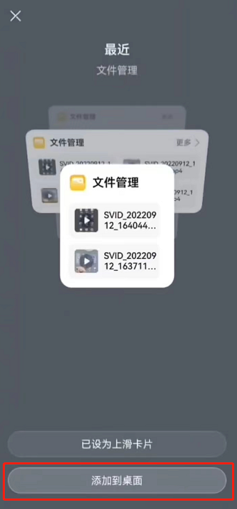 4、按照上述操作,至少添加两个(以上)卡片。然后长按其中一个卡片,将它拖动到另一个卡片上。