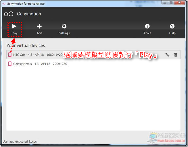 在设定完毕与选择好要模拟的机型后,执行「Play」: