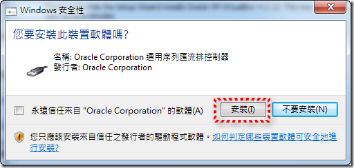 过程中或有几次类似下图的安全性提示,请执行「安装」: