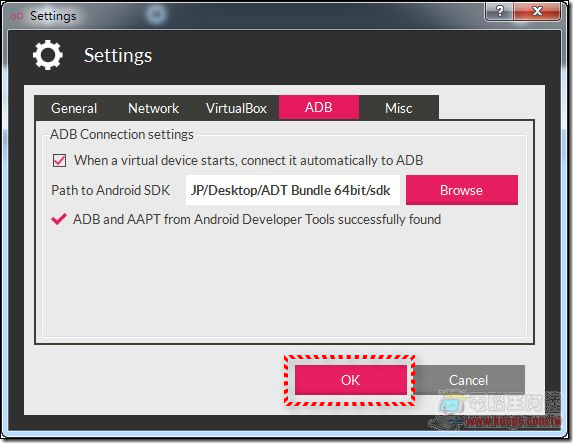 确定路径无误后执行「OK」(记得检查最后的路径名称是不是「sdk」),错误的话这个步骤会过不去: