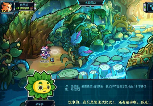 我们首先要面对的是40级600血的呆呆葵,会愈合技能,只要属性克制非常好打,接着是45级800血的麦麦迪,会给自己补血,会让敌人流血,如果有高级精灵对战当然也不再话下。