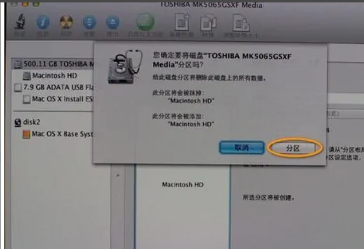 弹出提示窗口,分区数据将被抹掉,点击【分区】。