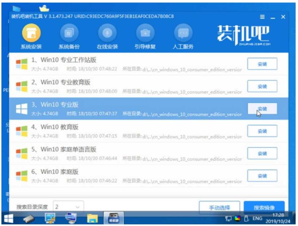 7、进入PE系统后,继续打开装机工具选择系统进行安装。