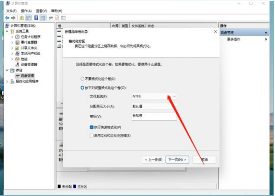 6、根据新建卷向导,完成设置即可。然后重新打开此电脑,会发现多了一个新分区。
