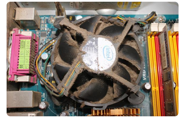 如果是在使用电脑的过程中突然黑屏,就有可能是这两个部件温度过高造成的,可以观察下机箱内的灰尘,尤其是显卡风扇和CPU风扇上的灰尘,如果灰尘较大,且已经塞满了散热片,那就把这些灰尘清理一下,电脑就可以正常使用了。