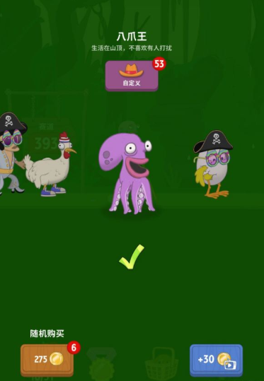 还有游戏中的角色随机购买,点击它,说不定哪天运气爆属棚,八爪王就会一跃而出,瞬间解锁。