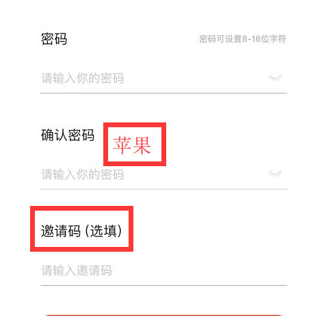 首先是注册页面,有两个系统,一种是IOS系统,一种是安卓系统,这两个系统区别在哪里呢就是一个要填邀请码(邀请码不区分大小写),一个邀请码是选填的