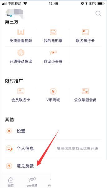 2、进入到了的个人中心界面当中,点击列表中的 意见反馈的选项