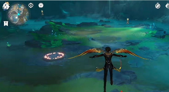 大家到了巨渊主矿区下方传送点后,沿着左边的路去地下水泽的路上,有个水池,还能看到个愚人众的营地,在水池中央有个流明晶石,之后朝着西北方向,也就是小地图的左上角走,来到悬崖边后,朝着北方向走,有条盘上去的山路,顺着路一直走,能遇到个仙灵,仙灵旁边有个流明晶石。