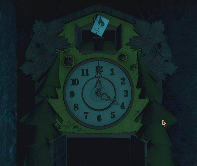 有玩家拿了蓝色花纹的那个(不知道别的可不可以),再起身去看钟,表盘上会有印记,转动指针到对应的印记就可以打开钟,拿到会说话的狼卡。