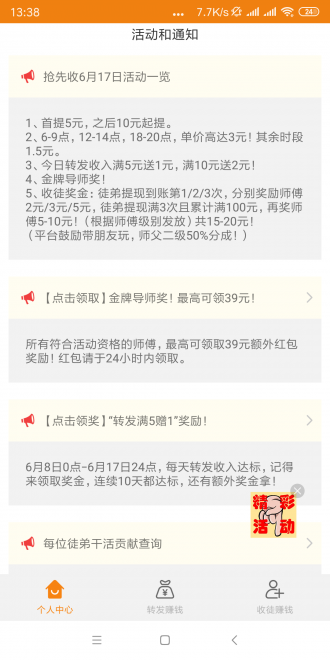 3、每日转发收益满5元再送1元,满10元送2元,满20元送4元,满30元送6元