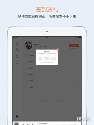 奖励多多:连续签到、邀请好友送听书朗币,各种线上线下好礼等你拿。