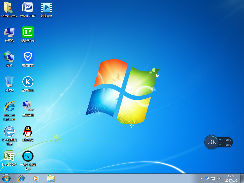 通过上述设置后,点击确定,电脑就会自动的进入到系统安装界面,全自动的安装只要耐心等待就可以把32位升级到64位了。