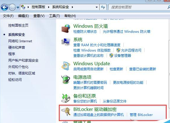 接着在系统和安全里我们就可以看到bitlocker驱动器加密的选项了。