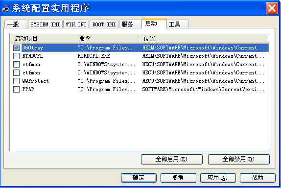 在这个窗口中继续点击启用标签,在这里我们就可以禁用一些不需要的程序来优化电脑了。