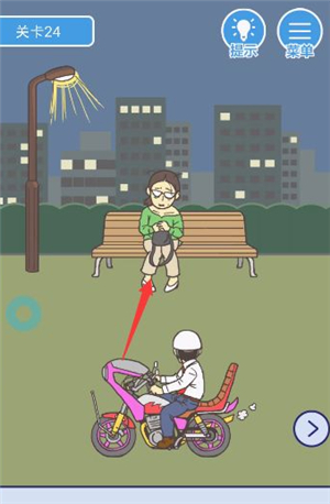 男猪脚出现,骑上了摩托车,点击返回第一画面,如下图所示