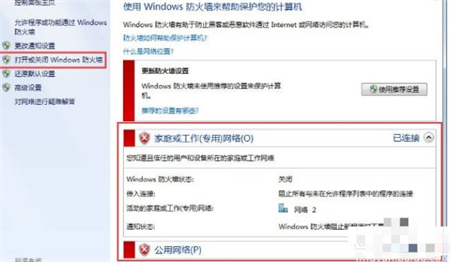 5、回到网络和共享中心,点击Windows防火墙,关闭防火墙;