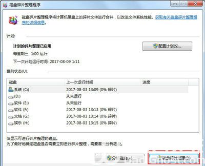 5、这里温馨提示,如果以后不想进行磁盘整理,想设置为自动进行整理,点击“配置计划”。