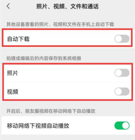 设置完成后,微信界面中的图片、视频、文件等就不会自动下载到手机内存里了~