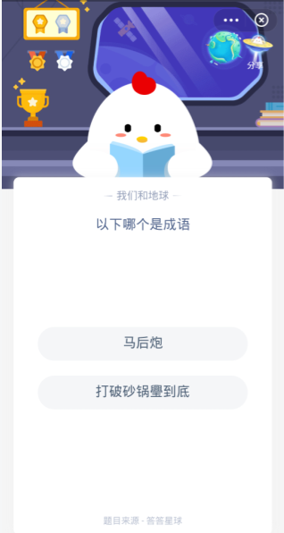 以上就是西西小编为大家带来的以下哪个是成语,蚂蚁庄园今日答案。希望大家喜欢。