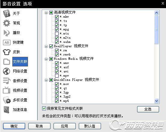 文件关联里,可以很明显的看到该软件的默认支持格式!