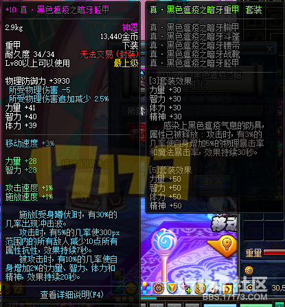 套装属性在图里,大家自行对比吧。总体效果感觉加强不大,但是单件4维有提升,套装属性被阉割。到底是加强还是削弱,这个仁者见仁,智者见智了。