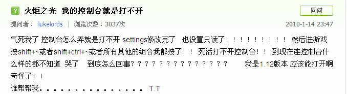 诀窍1、先打开那个SETTING.TXT,然后把console:0改成console:1.关掉.提示是否保存点保存.然后右键盘点setting.txt.出现的选项选属性.把只读点上.确定.进游戏.他就改不了你的setting.txt了!