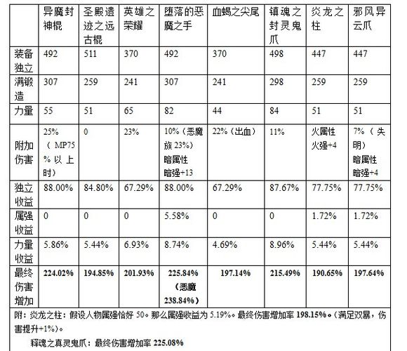 3、为了方便对比,武器的力量、独立等属性统一参照装备词典属性,满锻造。