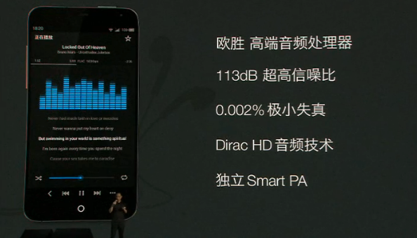 MX3配备英国欧胜高端音频处理器,113dB信噪比,0.002%的失真,Direct HD优化达到Hi-Fi级别水准,并全面提升耳机的声学表现。独立Smart PA(原飞利浦),外放声音更洪亮,还对喇叭提供智能保护。