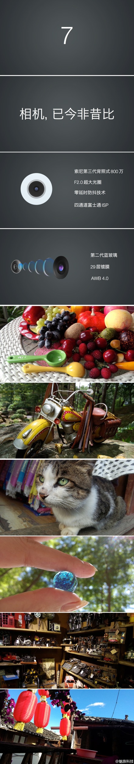 MX3 采用的相机今非昔比:索尼第三代背照式800万传感器,单位像素可以吸收更多光线,信噪比更高,带来更纯净的画质。20张/秒连拍,20张照片1秒内完成(市面上最快的索尼L36H,也只有10fps)。