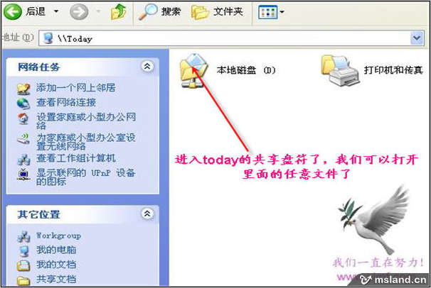 5.我们现在可以象第三章的进入方法进入today的共享资源了。区别就是来宾登录的共享方式没有弹出登录框,不用输入用户名和密码就可以直接进入了。