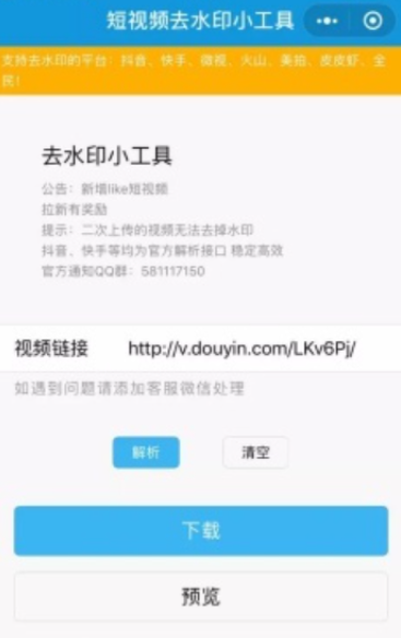 2、复制抖音视频的链接,把链接放到小程序,解析下载。
