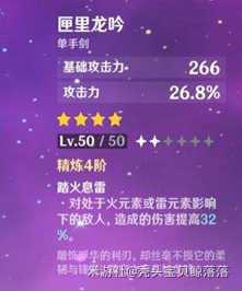 分析:唯一一把提供暴击率的单手剑,与刻晴升级加爆伤完美契合,特效更适合站场输出,对于速切流收益极低、