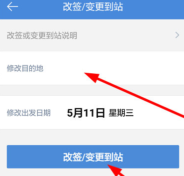 5、接着就可以改签目的地或乘车日期,然后返回点击改签/变更车站,即可完成改签。