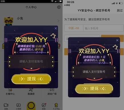 2、进入yy即可领取一个小红包,自动跳出“请输入支付宝账号”,大家输入后即可快速提现到账哟,非常方便~