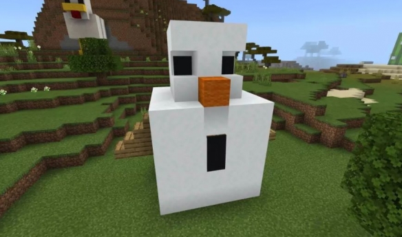 继续如图放置雪块,在雪块中间的空位放置一个南瓜,此时会生成一只被困住的雪傀儡