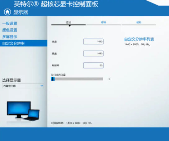 九、点击“自定义分辨率”后填写需要的数值(刷新率默认填写60hz),保存应用