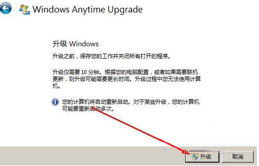4、在大家输入密钥之后在弹出的对话框里面选择我接受条款,然后接着在弹出来的升级对话框中点击升级,大概等待几分钟之后就会自动进入重启,并且等一下再重新启动的时候就会自动升级了哦。