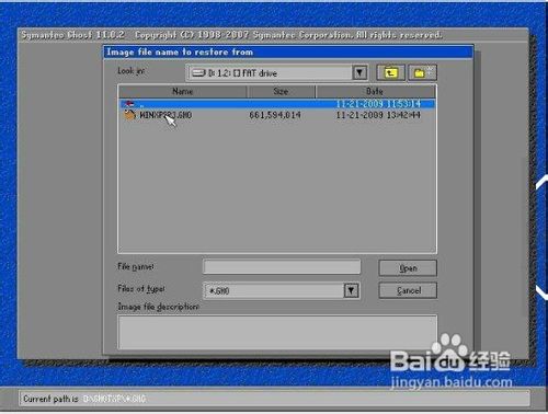 如下图,操作下面的界面,找到光盘里的 GHO 文件并选中,再点打开。