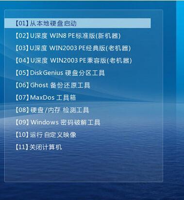 3、等待片刻,顺利进入u深度主菜单,如下图所示: