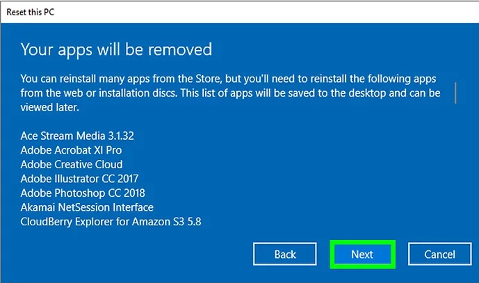 keep my files: 保留文件。尽管您在获得计算机后安装的所有应用程序都将被删除,但您的个人文件(例如图像和文档)将保持不变。