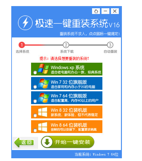 1、下载极速一键重装系统,点击开始重装系统。