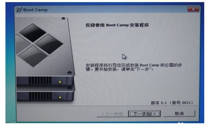 4、插入Windows 安装U盘或者光盘,再次启动Boot Camp助理,选择安装Windows 7 或更高版本。