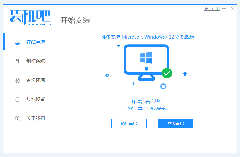 1、首先下载并安装装机吧软件,随后打开软件,选择需要重装的系统,然后点击下一步。