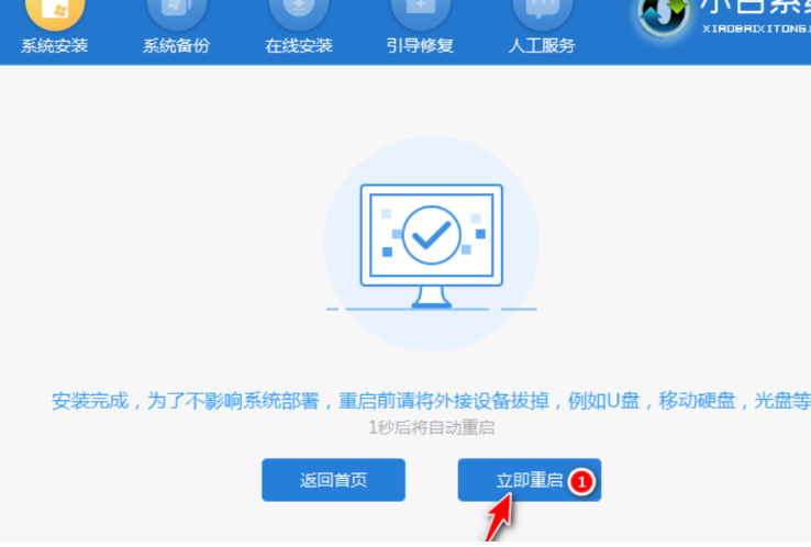 7、等待系统安装完成之后,按照提示拔出u盘重启电脑。