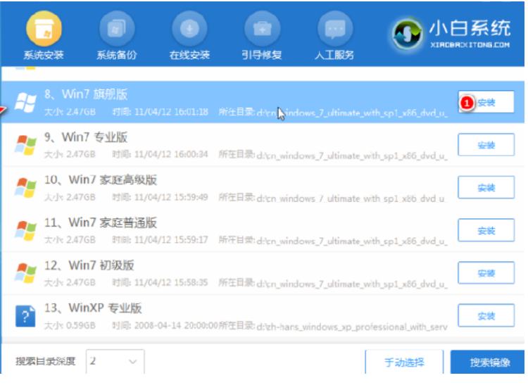 6、pe系统内,打开小白装机工具选择需要安装的系统执行安装,目标分区选择“C盘”即可。