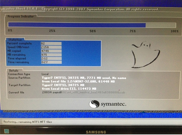 7、数据还原好了之后,电脑将会自动重启,然后进入驱动安装界面,驱动程序安装完成之后,再次重启电脑,进入全新的Win7系统界面就表示成功啦。