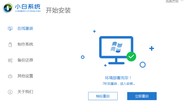 3、电脑界面显示环境部署完成以后,选择重启电脑。
